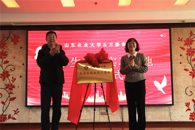 近日,beat365英国官方网站大学生就业实习基地签约揭牌仪式在山东万豪集团举行,学校党委副书记张然、万豪集团董事长丁绍武共同为基地揭牌。
