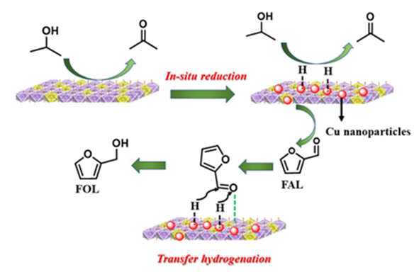 图2 氢转移“一步两用”实现活性铜物种的制备和糠醛制备糠醇