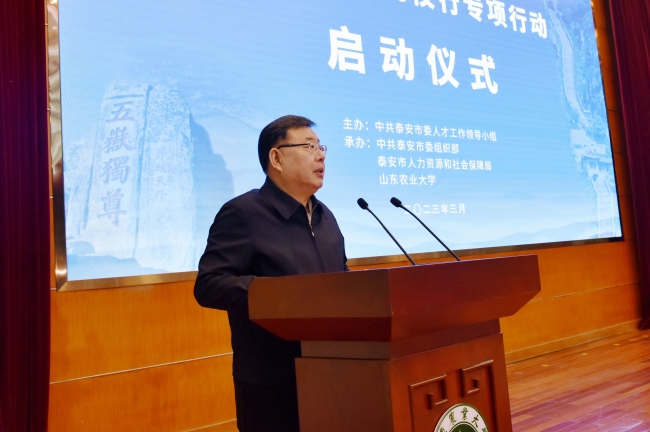 泰安市委常委、组织部部长刘泮英介绍泰安市青年人才政策和专项行动总体安排,市委常委、秘书长张颖出席,副市长马保文主持启动仪式。学校有关部门主要负责同志和部分应届毕业生代表参加活动。