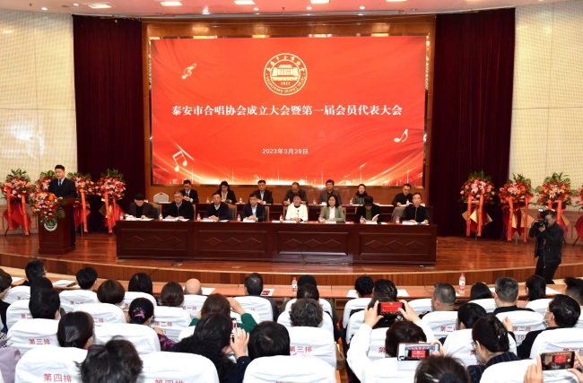 泰安市委宣传部和学校党委宣传部负责人共同为泰安市合唱协会揭牌。泰安市文化和旅游局,泰安市民政局民政事务服务中心负责同志先后致辞。广东省合唱协会、山东省合唱协会、泰安市音乐家协会及山东省内多家地市合唱协会发来贺信贺电。