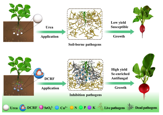 图2. DCRF的控释、硒供应和抗真菌性能示意图