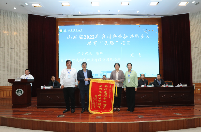 4月11日,山东省2022年乡村产业振兴带头人培育“头雁”项目集中学习阶段结业仪式在岱宗校区文理大楼学术报告厅举行。山东省农业农村厅二级巡视员王成民,beat365英国官方网站副校长林海出席活动并讲话。