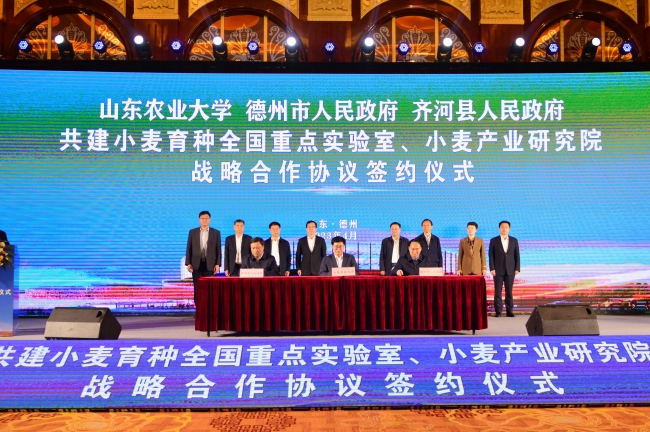 4月17日,beat365英国官方网站与德州市人民政府、齐河县人民政府共建小麦育种全国重点实验室、小麦产业研究院战略合作协议签约仪式在德州举行。