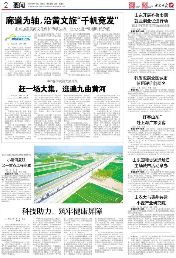 4月18日出版的《大众日报》在要闻2版刊发报道