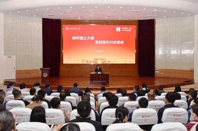 4月21日,党委副书记、校长冷畅俭在岱宗校区文理大楼学术报告厅,以“胸怀国之大者,勇担强农兴农使命”为题,为全校青年教师作专题报告。