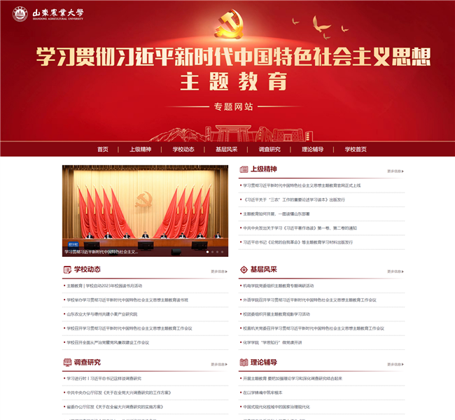 专题网站紧紧围绕学习贯彻习近平新时代中国特色社会主义思想,聚焦党中央、省委关于主题教育的重要决策部署,集中展现学校主题教育进展情况和实际成效,及时反映各单位各部门工作中的经验做法和先进典型,为全校师生跟进学习贯彻习近平新时代中国特色社会主义思想,及时了解主题教育开展情况提供窗口和平台。专题网站共设置“上级精神”“学校动态”“基层风采”“调查研究”“理论辅导”等五个板块。“上级精神”主要传达习近平总书记重要指示和讲话精神,关注中央和省委关于主题教育的重要决策部署;“学校动态”主要展示学校党委围绕主题教育进行的工作部署、开展的主要工作和取得的工作成效;“基层动态”主要展示学校各二级单位落实学校党委部署要求,开展主题教育情况;“调查研究”关注习近平总书记关于调查研究的重要论述,上级有关决策部署、理论文章和学校相关动态;理论辅导主要为学校师生提供主题教育相关的图文影像学习资料。