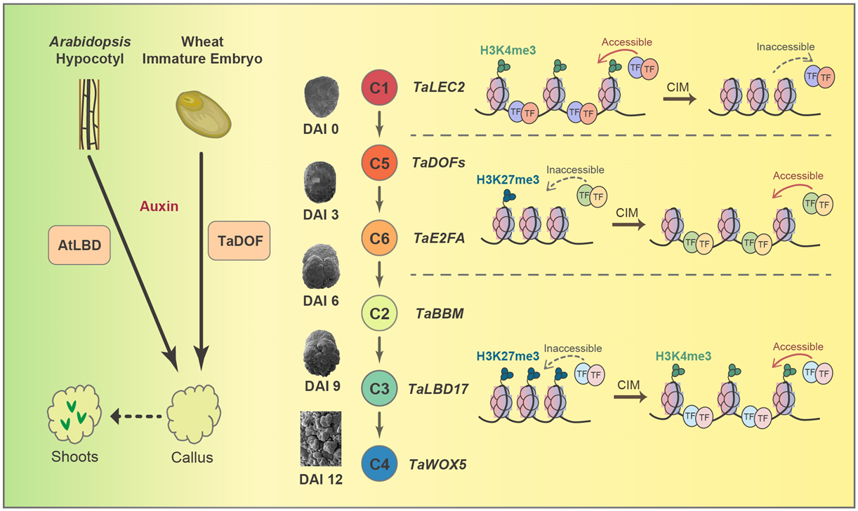图1. 小麦再生过程的转录和表观调控模型