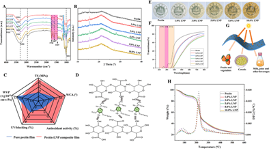 本研究通过在果胶中均匀负载木质素纳米颗粒,成功制备了果胶-LNP复合薄膜,克服了食品包装应用中单一成分的传统限制,为可生物降解的活性食品包装行业提供了新的思路和策略。