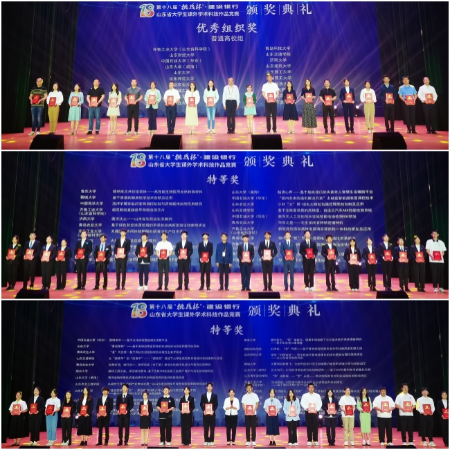 此次竞赛由团省委、省教育厅、省科技厅、省科协、省社科院、省学联主办,齐鲁工业大学(山东省科学院)承办普通高校组赛事,潍坊职业学院承办职业院校组赛事。beat365官网自去年12月启动“挑战杯”校级竞赛以来,各学院积极组队参赛,共吸引800余支团队5000余名学生参加,参赛团队提交的课外学术科技作品分为自然科学、科技发明、哲学社会科学3个类别。