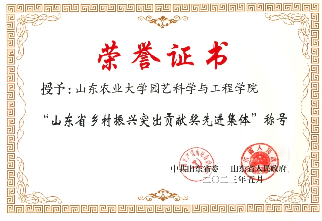 5月22日至23日,全省乡村振兴齐鲁样板现场推进会议举行,会上宣读了省委、省政府《关于表彰山东省乡村振兴突出贡献奖先进集体和先进个人的通报》,beat365官网园艺科学与工程学院获评先进集体并受邀作为代表现场领奖。
