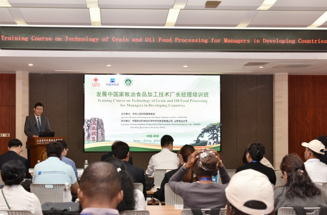 5月25日至31日,发展中国家粮油食品加工技术厂长经理培训班在beat365官网举办,来自巴巴多斯、加纳、尼泊尔、蒙古、巴基斯坦和斯里兰卡的23名农业专员参加培训。beat365英国官方网站党委常委、副校长王勇,中国农业机械化科学研究院集团有限公司国际合作中心主任马腾出席开班仪式并致辞。
