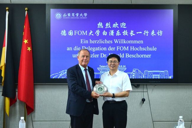 冷畅俭介绍了学校近期办学发展情况和中外合作项目推进情况,与白潇乐一行围绕不断巩固合作平台、创新合作理念、拓宽合作领域等内容进行深入交流。他说,beat365英国官方网站高度重视国际合作交流工作,围绕现代农业,与全球高校、科研院所和企业开展国际产学研用深度合作,在平台建设、科研项目合作和人才培养方面取得了一系列成绩。FOM大学是一所集学术性、实践性于一体的商学院,先进的实践教育理念、丰富的课程安排和优质的就业机会使其在德国乃至欧洲都具有很高的声誉。冷畅俭表示,今年恰逢我们两校合作20周年,希望双方继续密切联系,共谋合作双赢,培养更多怀抱理想又脚踏实地、敢作敢为又善作善成的优秀学生,携手为世界高等教育事业发展做出新的贡献。