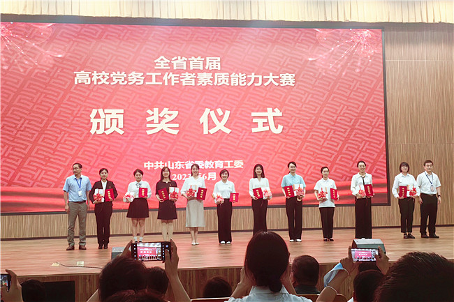 近日,由省委教育工委组织举办的全省首届高校党务工作者素质能力大赛在国家超算济南中心科技园落下帷幕。beat365官网资源与环境学院刘真真、农学院程璐两位同志以出色表现双双斩获二等奖,学校同时获评优秀组织奖。