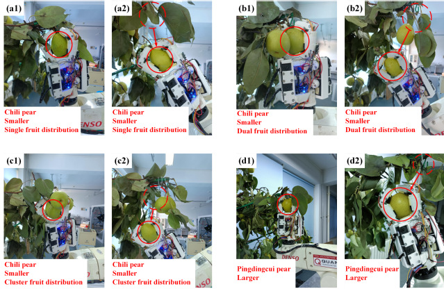 该研究构建了梨果收获采摘平台,并进行了模拟采摘试验。试验结果表明,该研究提出的仿生自适应绳驱梨果采摘末端执行器对不同品种、形状和大小的梨果具有自适应抓取能力,抓取过程稳定,抓取动作响应速度快,可实现无损伤抓取,对促进梨果收获自动化与智能化有重要意义,为后续水果采摘末端执行器的研究提供了学术和工程参考。