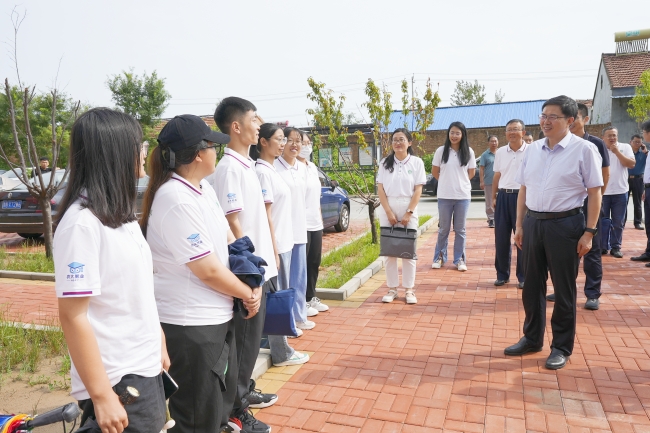 在武城县武城镇尚石庄村,冷畅俭详细了解了乡村治理、产业发展、乡村规划等情况,看望了正在村庄开展“万名学子联万村”暑期大调研的师生。在座谈交流中,冷畅俭听取了参加调研师生在调研过程中的感受和体会,对参加调研师生的饱满热情和认真态度给予充分肯定,对市县镇村为大调研工作提供的支持和帮助表示感谢。他表示,总书记给中国农大科技小院学生的回信,给全国涉农高校学生发出了要“志存高远、脚踏实地,把课堂学习与乡村实践紧密结合起来,厚植爱农情怀、练就强农兴农本领”的号召,要通过大调研真正走进乡村、理解乡村、助力乡村。学校也将通过大调研充分掌握乡村一线农情、社情、产情,不断推动校地、校社、校产的深度融合,更好服务乡村振兴。他详细询问了师生在调研过程中遇到的问题和困难,并督促学校部门、学院加强协调和帮助,更好支撑调研活动的顺利开展。