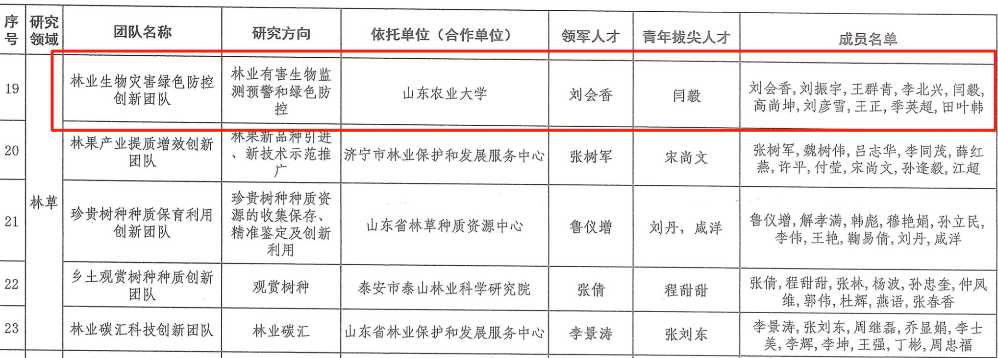 近日,山东省自然资源厅公布了山东省第一批自然资源高层次科技创新人才团队名单,beat365官网植物保护学院林业生物灾害绿色防控创新团队入选,团队负责人刘会香教授入选领军人才,团队成员闫毅副教授入选青年拔尖人才。