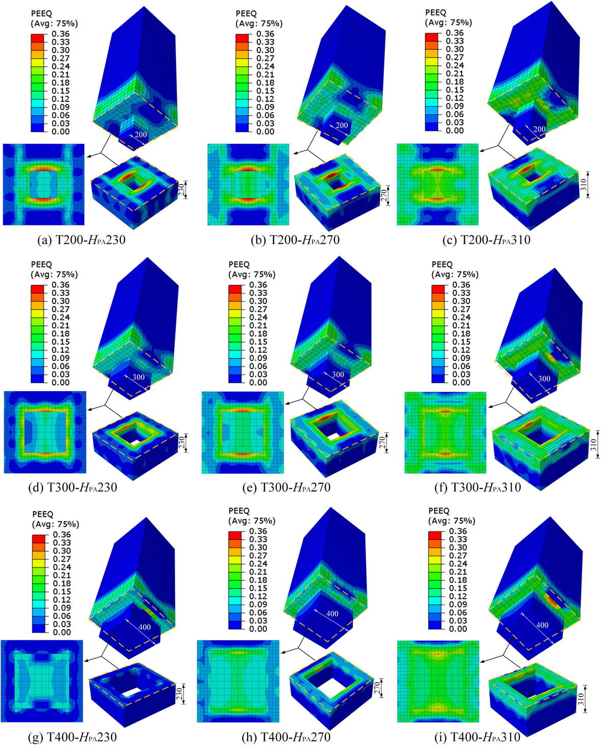 图1. 预制柱和后浇区的等效塑性应变