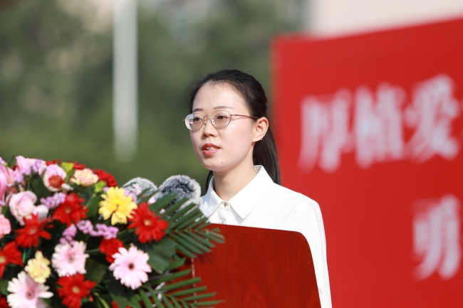 林海在主持典礼时表示,希望同学们坚定目标、埋头实干、开拓创新、潜心学业,弘扬“十年磨剑”山农品质,勇担“强农兴农”光荣使命,在一流农业大学建设新征程中绽放绚丽多彩的青春之花。