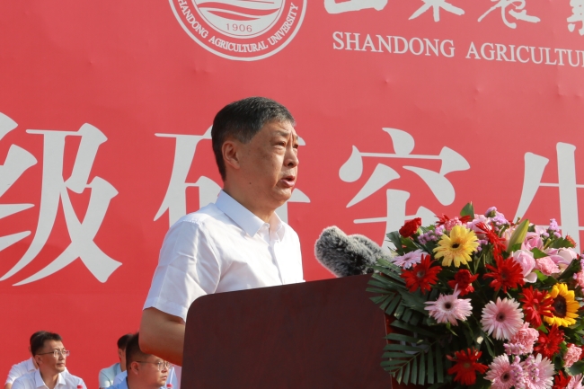 冷畅俭指出,今年“五四”青年节前夕,习近平总书记给中国农业大学科技小院的同学们回信,殷切希望同学们把课堂学习和乡村实践紧密结合起来,厚植爱农情怀,练就兴农本领,在乡村振兴的大舞台上建功立业。冷畅俭表示,作为新时代的研究生,希望同学们在课堂学习和乡村实践中厚植爱农情怀,接续深化开展大调研活动,积极投身乡村服务驿站建设,在零距离服务“三农”的实践中成为助力打造乡村振兴齐鲁样板的“先锋队”;希望同学们在深入生产一线解民生、治学问中练就兴农本领,重点研究解决农业农村生产实践中的实际问题,加入学校创新平台示范基地“独立团”、科技小院“尖刀连”,坚决打好“冲一流”建设的“阵地攻坚战”和“运动攻坚战”;希望同学们在矢志攻坚农业科技“卡脖子”难题中勇攀科研高峰,围绕“航母级”新型研发机构,扛起推动高水平农业科技自立自强的责任担当,面向主导产业,加入产业研究院“集团军”,开展协同创新,破解产业发展“卡脖子”难题,坚决打好“冲一流”建设的“战略攻坚战”,为保障国家粮食安全、建设农业强国、实现农业农村现代化提供智力支持和科技支撑。