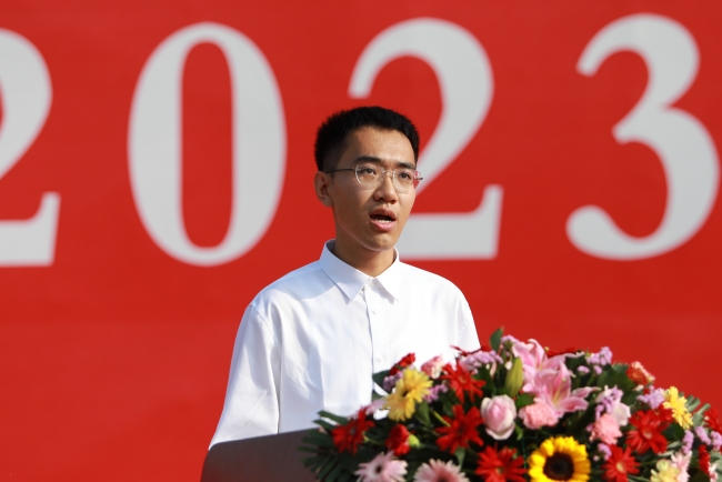 农学院张大健教授作为教师代表发言,结合个人经历谈了成长感悟,叮嘱研究生在科研生活中用好“加减法”、勤于阅读,注重学科交叉,在科研道路上不断取得新收获。在校研究生代表郝日礼、新生代表宁斯逸先后发言,分别从不同角度分享了对进入研究生学习阶段的认识和体会,表达了志存高远、不怕吃苦、永攀学术高峰的信心和决心。