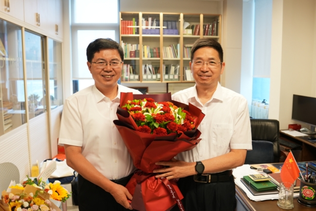 9月10日,教师节当天,学校党委副书记、校长冷畅俭到小麦育种全国重点实验室看望生科学院教授张宪省和农学院教授刘风珍,向他们送上鲜花和节日祝福,感谢他们为学校事业发展作出的贡献,通过他们向辛勤耕耘的全校教职员工致以节日问候。