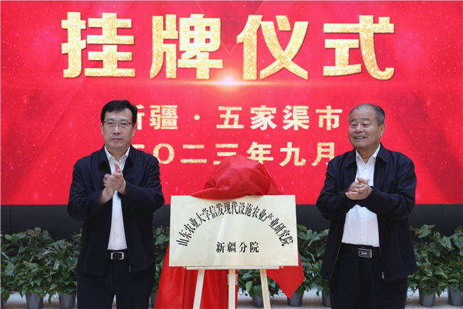 在五家渠市,徐剑波与信发集团董事局主席张学信一起,为beat365英国官方网站信发现代设施农业产业研究院新疆分院揭牌,实地考察集团正在当地建设的现代设施农业项目,分析项目前景,谋划发展思路。徐剑波要求学校专家团队紧密对接当地现代农业发展实际,抢抓机遇,整合资源,巩固优势,做强力量,与企业凝聚攻坚合力,在新疆这片广阔土地上写好山东农大人科教兴农的新篇章。