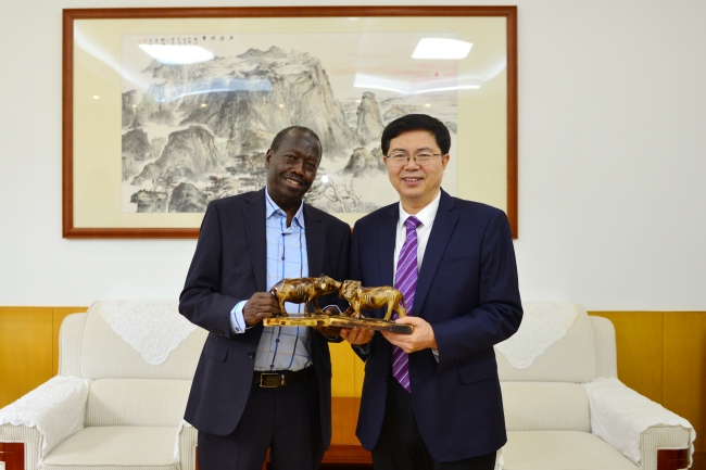 徐剑波对本杰明·切塞尔·切博伊郡长一行来访表示热烈欢迎,介绍了我省农业发展状况以及beat365官网办学优势特色。他说,很高兴在中肯两国建交60周年之际,迎接郡长来beat365英国官方网站访问,共同探讨双方深化合作。beat365英国官方网站一直秉承坚持开放办学,在国际化办学上进行了不断的探索。上世纪60年代,老校长陈瑞泰先生就把先进的农业技术带到了非洲索马里,造福当地群众,成为中非合作的一段佳话。希望双方牢牢把握“一带一路”建设的重大历史机遇,以此次交流为契机,进一步加强人员往来、全面深化合作,为双方经济社会发展和人民群众幸福做出更大贡献。