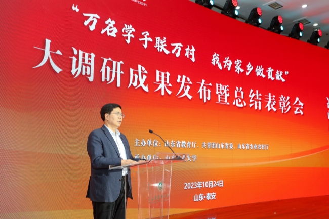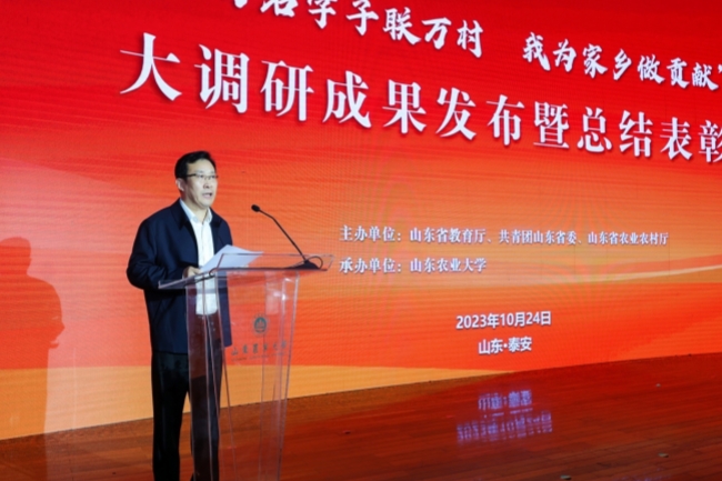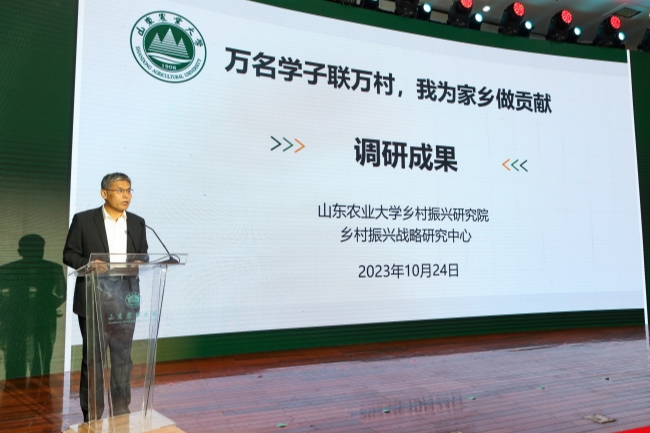 冷畅俭在主持发布会时表示,为全面推进乡村振兴,加快建设农业强国提供更多农大智慧、农大方案是山东农大义不容辞的责任。这次大调研是山东农大全面推进乡村振兴、加快建设农业强国,建设一流农业大学的具体实践,是把科技、人才、技术与乡村农业生产实际需求进行无缝衔接的一次生动探索,也是全国唯一一个涉农高校对一个省全部行政村进行全覆盖地毯式调研的先行者。下一步,学校将持续巩固拓展固化大调研经验成果,推动“万名学子联万村,我为家乡做贡献”大调研工作制度化、常态化,努力将大调研打造成人才培养的新渠道、科技创新的新平台、成果转化的新路径、服务乡村振兴的新品牌,努力为加快建设农业强国,推进农业农村现代化作出新的更大贡献。