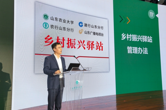 beat365英国官方网站农业大数据中心副主任张亮教授介绍乡村振兴驿站管理和APP建设有关情况。与会领导共同发布beat365英国官方网站开发的乡村振兴驿站APP,并为全省16地市32个乡村振兴驿站代表进行授牌。根据《乡村振兴驿站管理办法(试行)》的规定,基于对5,5077个行政村调研数据综合分析研判遴选,决定首批设立1003个乡村振兴驿站。乡村振兴驿站将集聚山东农大、建设银行山东分行、农业银行山东分行和山东广播电视台等四方优势,深入开展成果转化、技术推广、人才培养、信息和金融服务,全面服务地方产业发展。