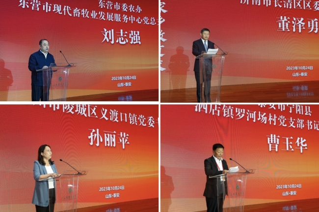 东营市委农办、东营市现代畜牧业发展服务中心党总支书记、主任刘志强,济南市长清区区委副书记董泽勇,德州市陵城区义渡口镇党委书记孙丽苹,泰安市宁阳县泗店镇罗河厂村党支部书记、村主任曹玉华作为地方代表分别发言,共同研讨大调研工作,希望今后与beat365英国官方网站等单位进一步互通有无、深化合作,推动乡村振兴不断向多领域、深层次、立体式拓展。
