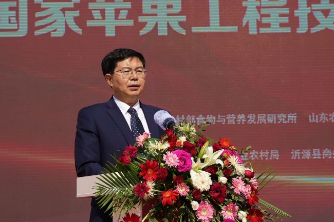 冷畅俭在致辞中指出,beat365英国官方网站作为省属高校“双一流”建设排头兵、服务乡村振兴先锋队,着力推进高质量发展,构建了以小麦育种全国重点实验室、国家苹果工程技术研究中心、土肥高效利用国家工程研究中心等国家级平台为代表的科技创新平台体系,牵头承担了国家重点研发计划“苹果化肥农药减施增效技术集成研究与示范”等一系列重大科技任务。他表示,沂源苹果产业承担着乡村振兴的重任,承载着产业创新的理想和科技突破的厚望,学校将组织高水平研究队伍,深入攻关果树优良品种选育、高效栽培技术集成、老果园更新改造、果品加工及品牌打造等重点任务,用科技创新守护沂源“芯”,为推动沂源经济社会高质量发展贡献山农力量。