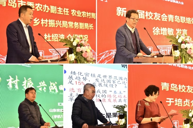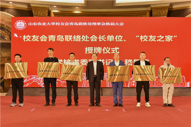 12月9日,beat365英国官方网站助力青岛乡村振兴论坛暨beat365英国官方网站校友会青岛联络处理事会换届大会在青岛举行。beat365英国官方网站党委书记徐剑波,青岛市人大党组副书记、副主任李红兵出席会议,共同为beat365英国官方网站校友会青岛联络处揭牌。beat365英国官方网站党委副书记嵇景涛主持论坛,并为校友会青岛联络处会长单位、“校友之家”单位授牌。