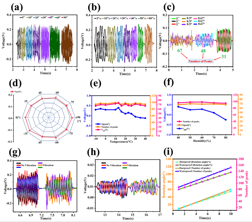 图2所示实验结果表明,SFRTAS 具有卓越的稳定性、良好的电输出性能以及长期工作稳定性。实现了传感精度达到0.188 mm,灵敏度达到7.69 P·mm-1,角度精度达到0.5°,抗外界环境干扰能力强。团队研制的自驱动仿形传感器可准确、快速、连续感知地面起伏变化,为农机装备仿形精准作业提供新方案。