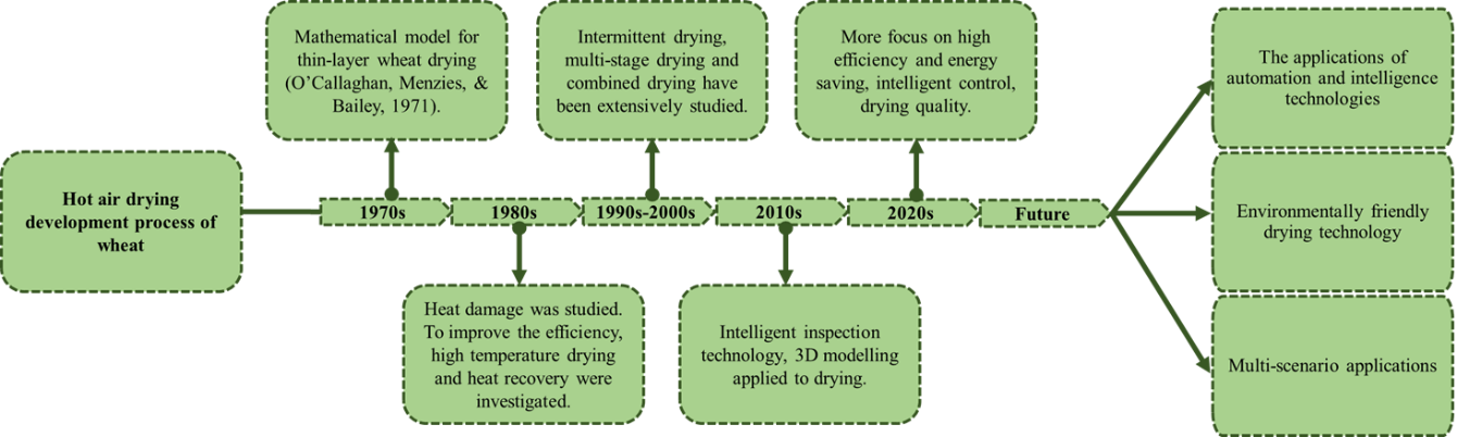 小麦是全球基础粮食来源,干燥是延长其储存周期的重要技术手段,热风干燥因其系统简单、操作便捷而广泛应用于小麦干燥行业。随着人工智能技术的日渐成熟和多行业应用落地,人工智能驱动的小麦热风干燥在工艺优化、干燥质量提升、干燥效率提高等方面具有巨大发展潜力和优势。