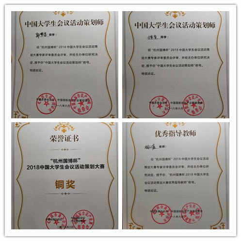 2018年6月25-26日,米兰milan官方网站派出代表队参加了在海口举办的“杭州国博”杯2018中国大学生会议活动策划大赛,荣获大赛决赛铜奖,指导老师烟小康荣获了优秀指导教师的殊荣。