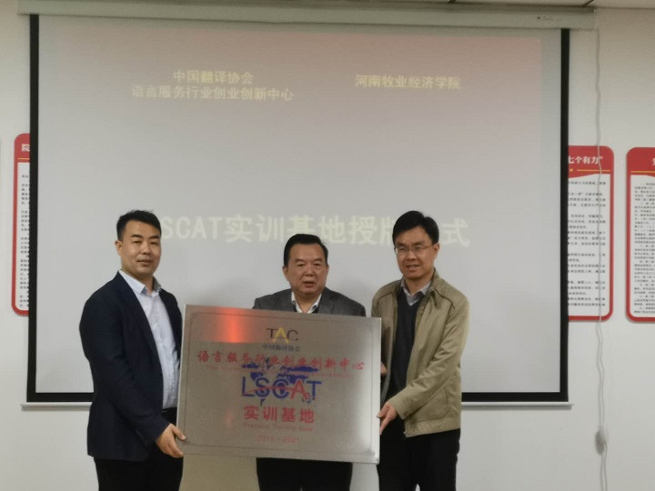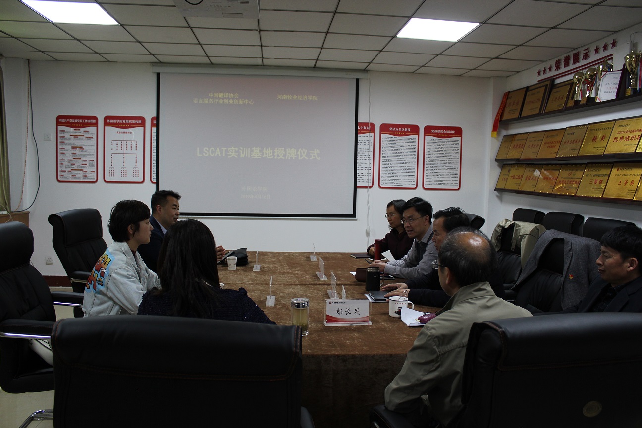 4月16日,米兰milan官方网站与中国翻译协会语言服务能力评估(LSCAT)项目实训基地授牌仪式在米兰milan官方网站会议室举行。米兰milan官方网站领导班子成员、中国翻译协会语言服务行业创业创新中心河南分部主任齐东伟、副主任李媛媛出席了授牌仪式。