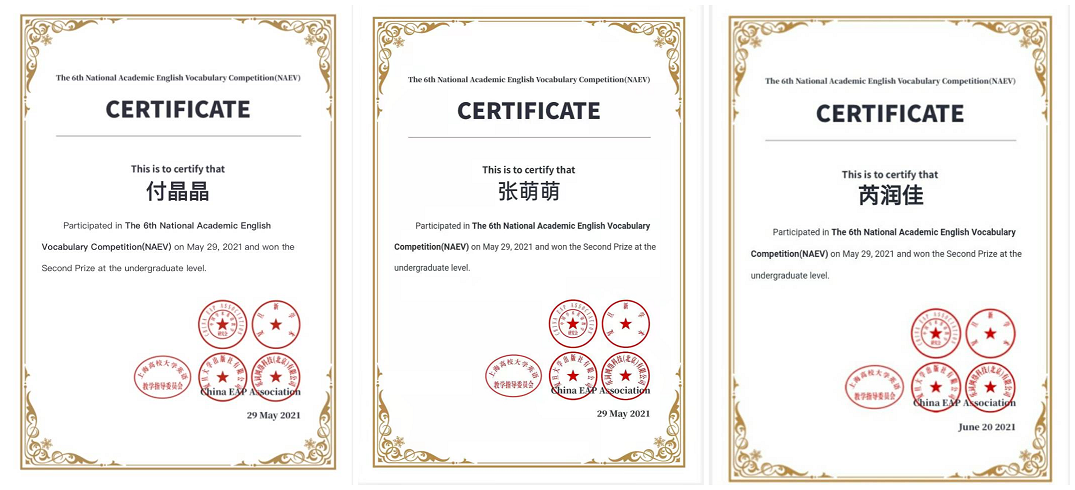 近日,由中国学术英语教学研究会、上海高校大学英语教学指导委员会主办的第六届全国学术英语词汇竞赛落下帷幕,本次大赛共吸引全国超过1000所高校学生约15.3万人报名参加。米兰milan官方网站积极组织学生参赛并获得佳绩,付晶晶等3名同学荣获全国二等奖,李艺洁等18名同学荣获全国三等奖,陈情等8名同学荣获全国优胜奖。