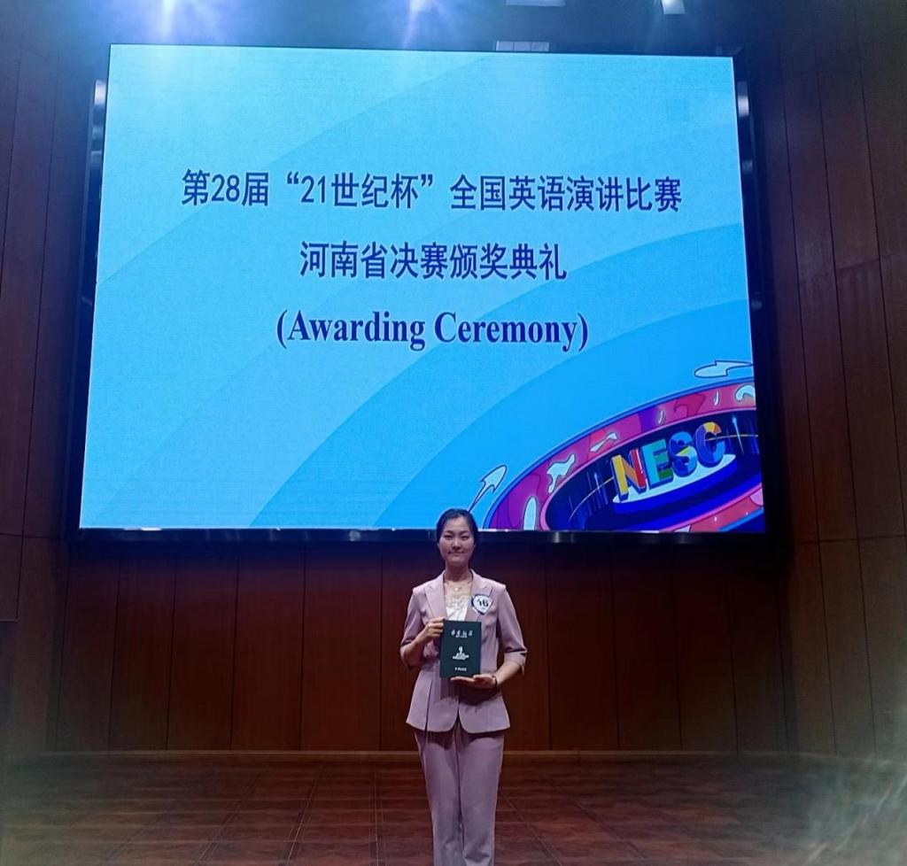 第28届中国日报社“21世纪杯”全国大学生英语演讲比赛河南省决赛于6月5日在郑州西亚斯学院举办,米兰官网选手米兰milan官方网站商务英语专业康依凡同学荣获省赛二等奖,禹琳琳老师被评为优秀指导教师。