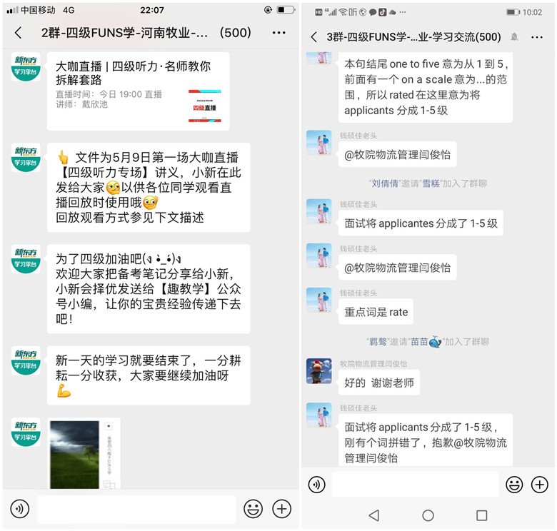 新东方教育科技集团在全国选取了两所高校进行“28天伴学计划”试点,米兰官网是其中之一。自活动开展以来,得到了同学们的积极响应,如今已开通四级群是4个,六级群1个,两千五百余名学生加入。微信群定时发送学习提醒,并提供学习资料,米兰milan官方网站的教师也加入到各个学习群,与新东方教育科技集团的技术人员一起为学生解决学习中遇到的困难。参与学生通过新东方在线外语教学平台APP/PC线上进行视频课程、试题训练、名师直播等学习。同学们纷纷表示这种“伴学”方式有的放矢,针对性强,有效解决了学习中的问题,同时免费为同学们开通网络英语四六级辅导课程,既拓展了同学们学习的空间,拓宽了同学们复习的渠道,又减轻了同学们的经济压力。