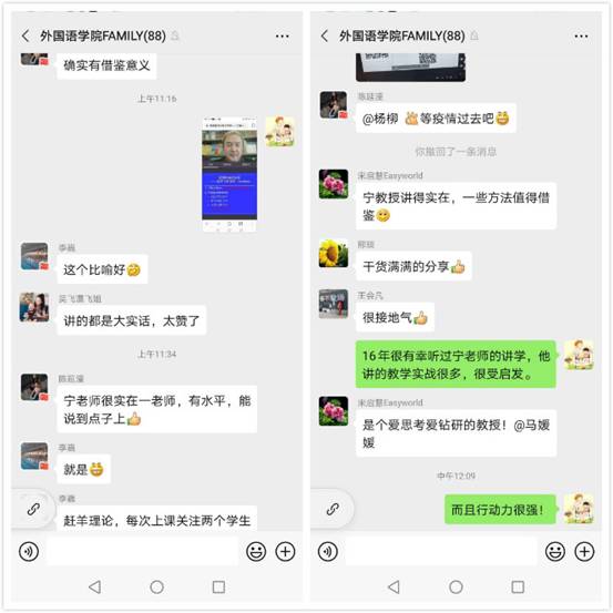 第三个阶段为如何进行疫情期间外语课程思政建设。在抗疫斗争中,涌现出了许多可歌可泣的感人事迹,为课程思政提供了良好的素材。为帮助大家打磨课程思政,米兰milan官方网站组织了“外语课程思政建设”系列讲座,同时加入由外研社创办的“课程思政教学外研虚拟教研室”,与全国各地的外语教师共同研讨如何在抗击“新冠病毒”疫情的特殊时期,发挥好线上教学平台的独特优势,充分挖掘和提炼疫情期间国内外新闻媒体的观点、事迹中的思政元素设计好教学内容,掌控好教学过程,优化教学方法和教学目标,做好教学素材归纳梳理,实现疫情期间外语课程思政教学的价值目标。