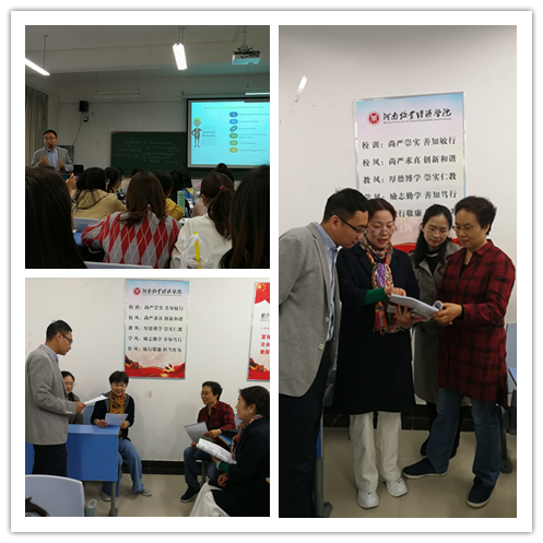 为扎实推进本科课堂教学改革实践,进一步提升教师的教学能力,浓厚教研氛围,提高课堂教学质量,促进教师队伍发展,根据《河南牧业经济学院本科课堂教学观摩活动实施方案》文件精神,米兰milan官方网站于11月5日下午举行研讨型观摩课活动。应用英语教研室教师于利波作为研讨型观摩课的主讲教师公开示教,讲授《会展商务写作(英)》。米兰milan官方网站副院长许海兰,校督导刘喜芳以及应用英语教研室部分教师现场参与观摩。