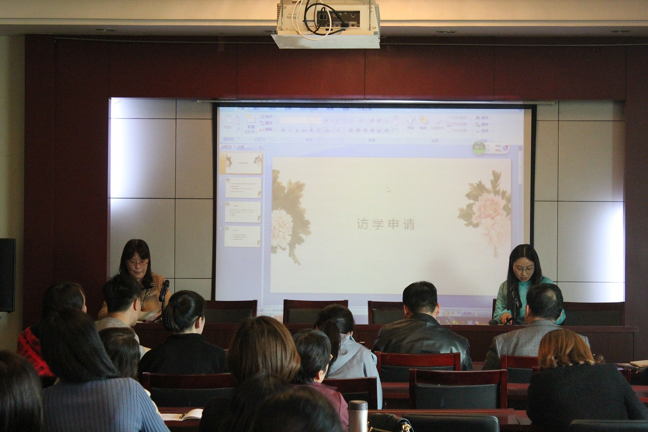 申请“高校英语教师出国研修项目”顺利入选的孙晓静老师跟大家分享了项目申报的流程和注意事项。孙老师对学校积极选派中青年骨干教师出国进修的举措表示感谢,表示出国研修期间,一定会按照学校选派出国的具体工作要求,认真学习,虚心求教,进一步明确学习目的与学习任务,以显著的业绩和成果回报学校和部门的信任与支持。