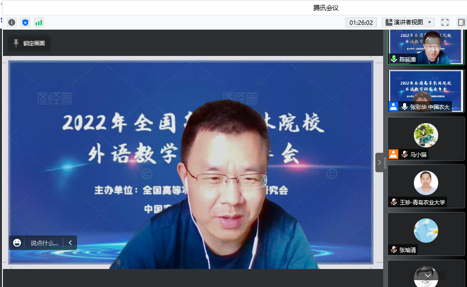 2022年全国高等农林院校外语教学研究会年会于7月26日通过线上的方式举办,米兰官网米兰milan官方网站院长陈延潼、副院长马媛媛及相关教研室主任应邀参会。