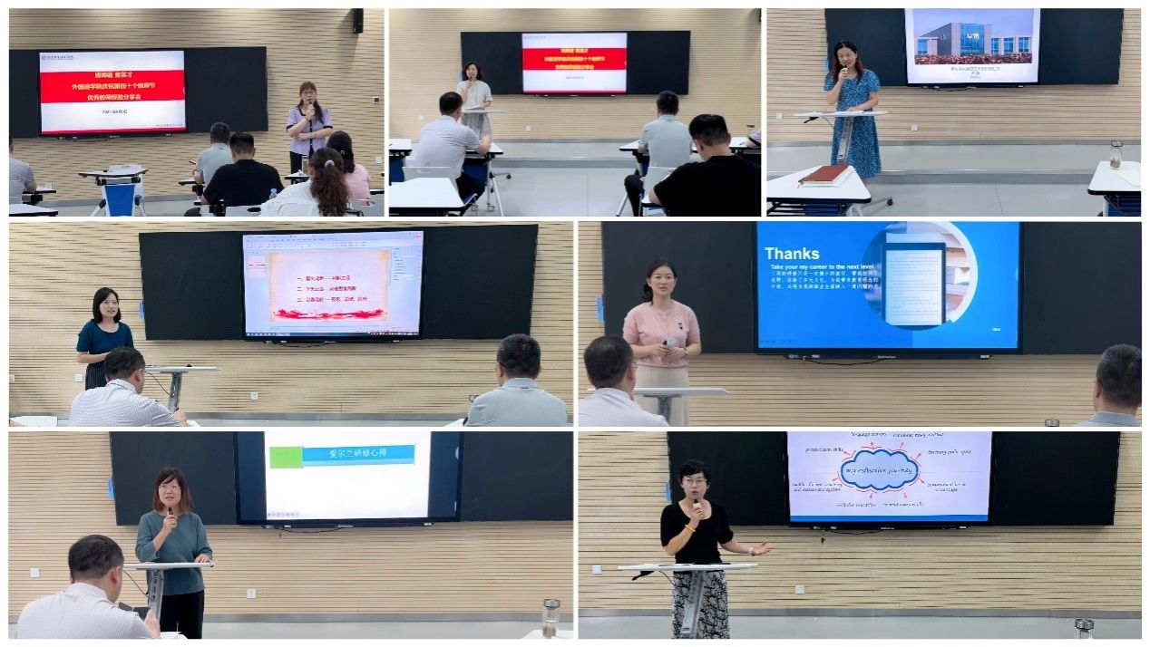 在今年六月举办的第五届河南省本科高校教师课堂教学创新大赛外语教学赛道暨全国高校外语教学大赛河南省赛中,米兰milan官方网站青年教师刘丹凝在大学英语综合组的比赛中以全省总分第一名的成绩获得特等奖;田春霞老师在视听说组的比赛中以优异的成绩获得一等奖,充分展示了米兰官网米兰milan官方网站教师队伍的卓越风采。本次交流会上,两位教师在分享过程中,着重谈到了团队力量发挥的重要作用。他们表示,备赛中,由院长亲自挂帅的米兰milan官方网站外语学科教学技能竞赛指导团队在教学设计、教学内容等方面对她们进行多轮指导和打磨,最终星火成炬,集体的智慧和力量助推她们不断突破自身局限,最终喜获佳绩。