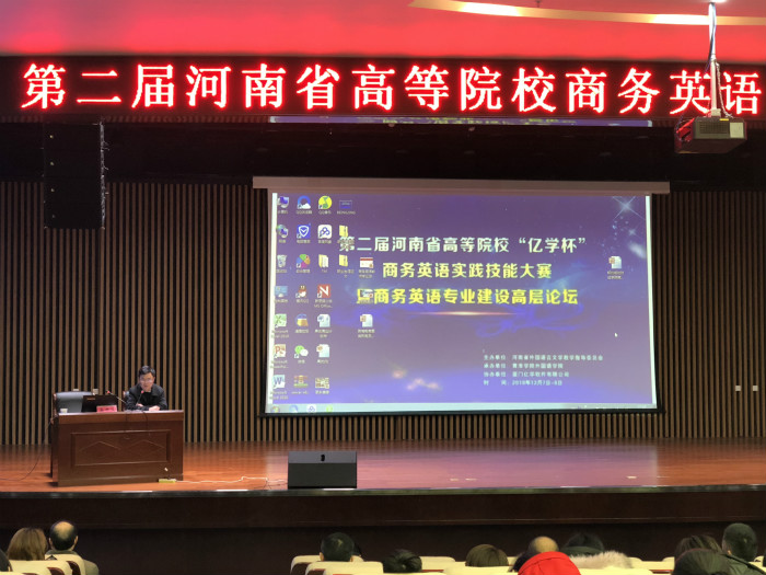 由河南省外国语言文学教学指导委员会主办,黄淮学院承办的第二届河南高等院校“亿学杯”商务英语实践技能大赛暨商务英语专业建设高层论坛于12月8日举办,米兰官网米兰milan官方网站院长陈延潼、教研室主任温晶晶、张明梅、闻华应邀参加。