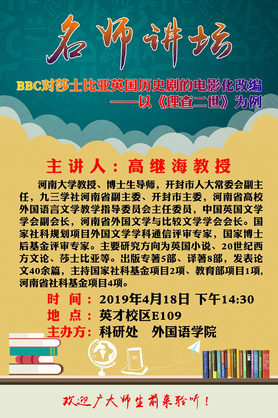 名师讲坛--BBC对莎士比亚英国历史剧的电影化改编(河南大学-高继海教授)