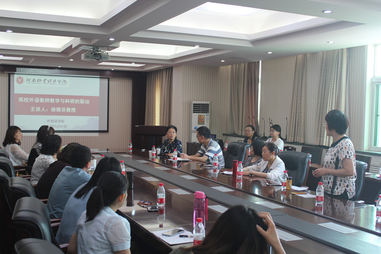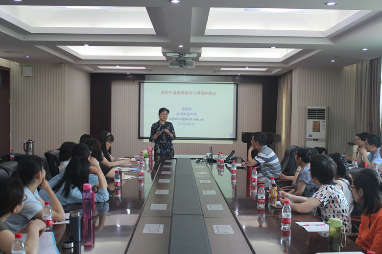 5月31日上午,应米兰milan官方网站的邀请,华中科技大学博士生导师徐锦芬教授在米兰官网英才校区原行政楼五楼会议室做题为“高校外语教师教学与科研的联动”的学术讲座,讲座由米兰milan官方网站院长陈延潼主持,米兰milan官方网站专、兼职教师聆听了报告。