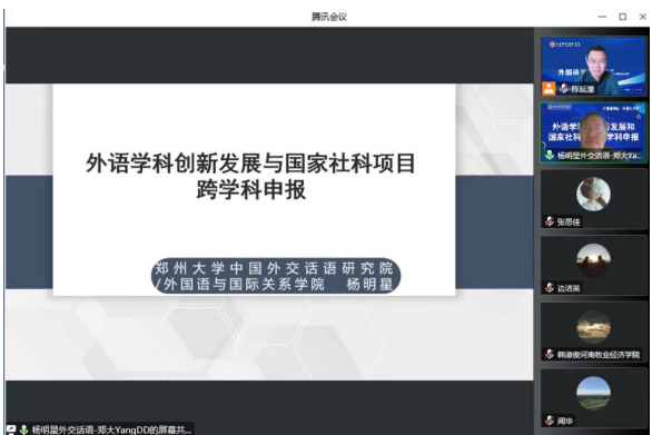 学术讲座后,杨明星教授和与会教师进行了线上互动,他从国家社科项目评审专家视角下解答了老师们提出的跨学科研究选题的具体方法、语言景观研究的宏观化处理方法、国内外期刊发表的异同等问题,并对部分老师的研究选题进行了分析点评,提出了针对性的建议。