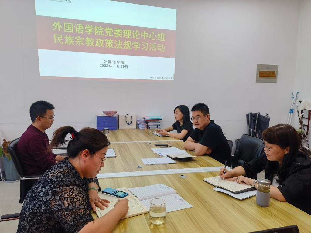 为认真贯彻落实学校党委统战部的工作要求,8月29日上午,学院党委理论学习中心组召开会议,专题学习习近平总书记关于宗教工作的重要讲话和指示批示精神,以及宗教工作的有关文件、法律法规,传达学习了校党委下发的《关于开展米兰官网2022年民族宗教政策法规宣传月活动的通知》文件及学校举办的“宗教政策专题培训会” 精神。会议由党委书记胡先锋主持。