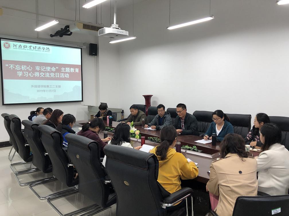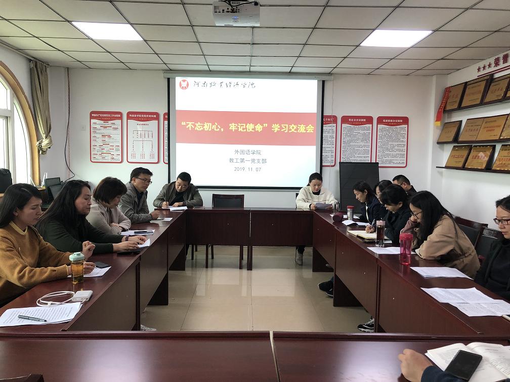 根据学院“不忘初心、牢记使命”主题教育学习安排,11月7日下午,米兰milan官方网站教工第一、第二党支部分别召开“不忘初心、牢记使命”主题教育学习交流会。教工党支部全体党员参加了会议,会议由支部书记吴国权、张静分别主持。